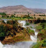 The river Nile, over 800km in length within Ethiopia and the longest river in Africa, holds part of its heart in Ethiopia. From lake Tana, the Blue Nile, known locally as Abbay, flows for 800 km within Ethiopia to meet the white Nile in Khartoum to form the great river that gives life to Egypt and the Sudan. It has been said that the Blue Nile contributes up to 80% of the Nile's flow. The Blue Nile Falls are about an hour by tour bus from Bahar Dar. Known locally as Tis Isat, the falls are over 400m (1312ft) wide and 45m (148ft) deep. Because of a series of dams near Bahar Dar, they aren't as impressive as they used to be. Nowhere, is it more spectacular than where it thunders over the Tisisat Falls literally " Smoking Water" - near Bahar Dar. Here millions of gallons of water cascade over the cliff face and into a gorge, creating spectacular rainbows, in one of the most awe-inspiring displays in Africa.