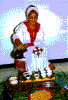 costume, the ceremonial apparatus is arranged upon a bed of long