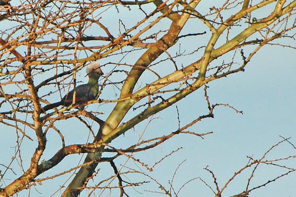 its nest some five to six meters from the ground on top of an acacia.