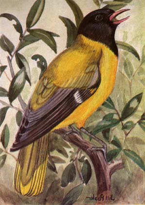 morsel of food, then flies with it to a branch where he sits and calls