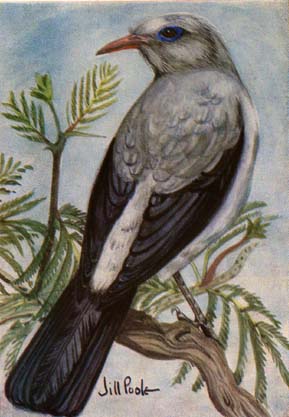 starlings, like the White-crowned Starling (Spreo albicapillus);